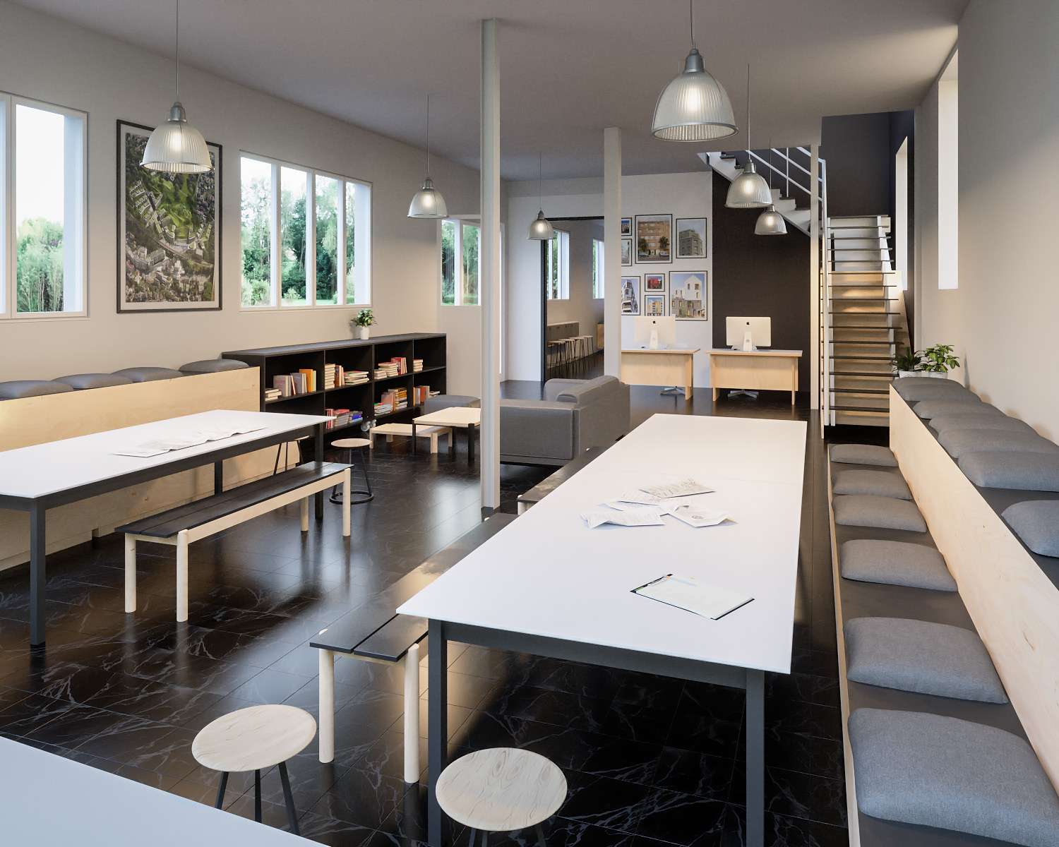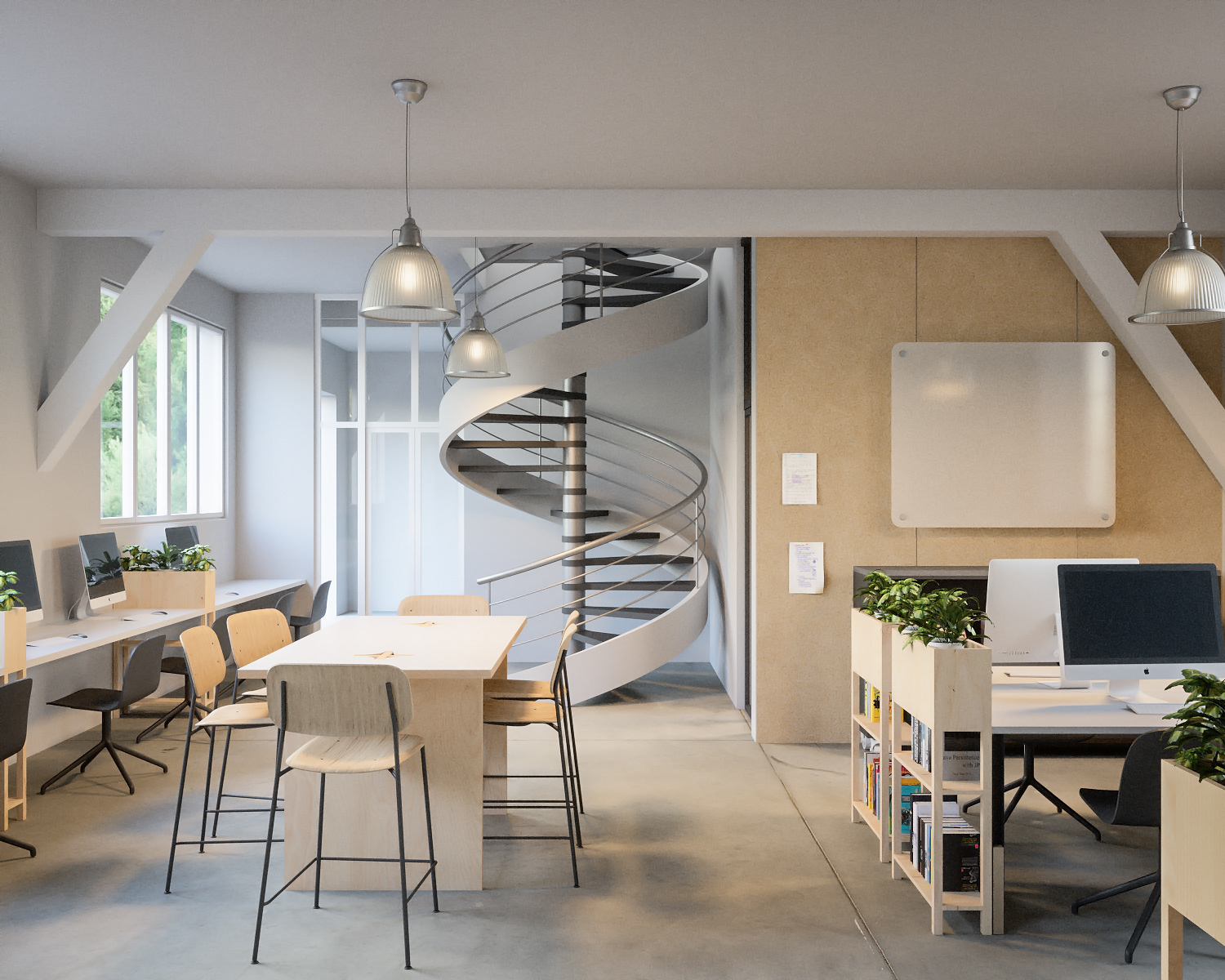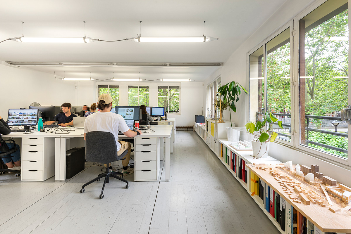 Full concept of CoBe Architecture new agency in a former industrial building in Paris.