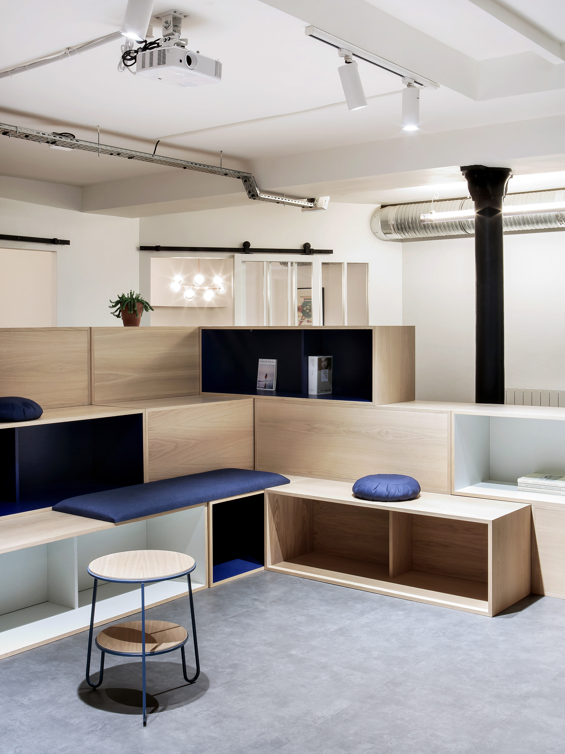 Project of living and office space for a Parisian Company. Full custom design of furniture and renewal of the space.